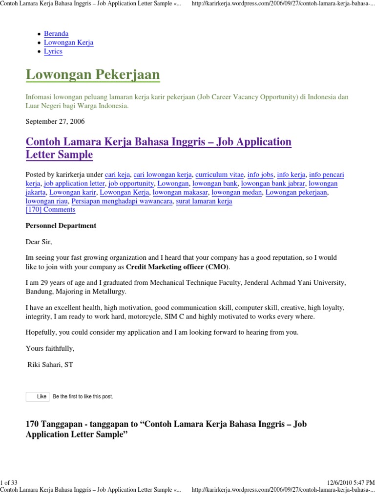 Vacancy for fresh graduate september 2009. Lowongan kerja guru bahasa inggris. Post a comment for lowongan kerja guru bahasa inggris. Contoh lowongan kerja restoran dalam bahasa inggris.