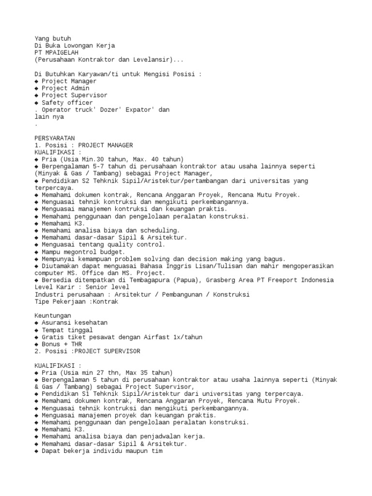 Lamaran lowongan kerja pt freeport indonesia juni 2021 diterima paling lambat: Lamaran yang tidak memenuhi kualifikasi diatas tidak akan diproses. Hanya kandidat terbaik yang akan dipanggil untuk mengikuti seleksi tahap selanjutnya. Kami memasarkan konsentrat ke seluruh penjuru dunia dan terutama ke smelter tembaga dalam negeri, pt smelting.